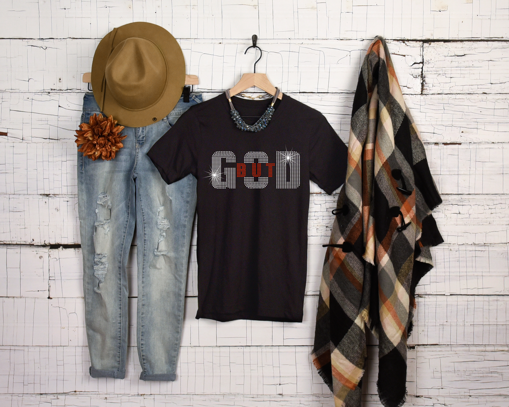 Sparkle in this beautiful Rhinestone Shirt -"But God"